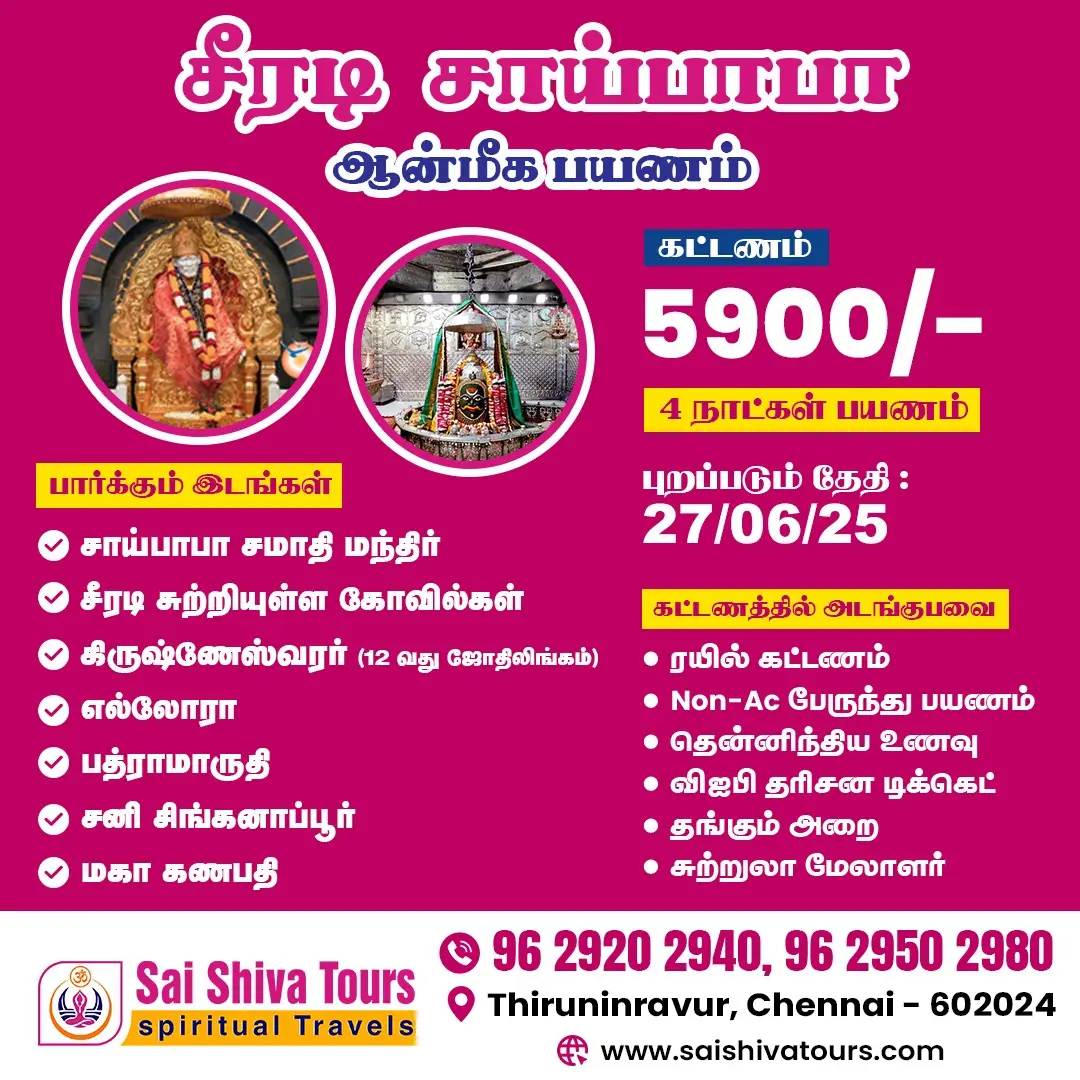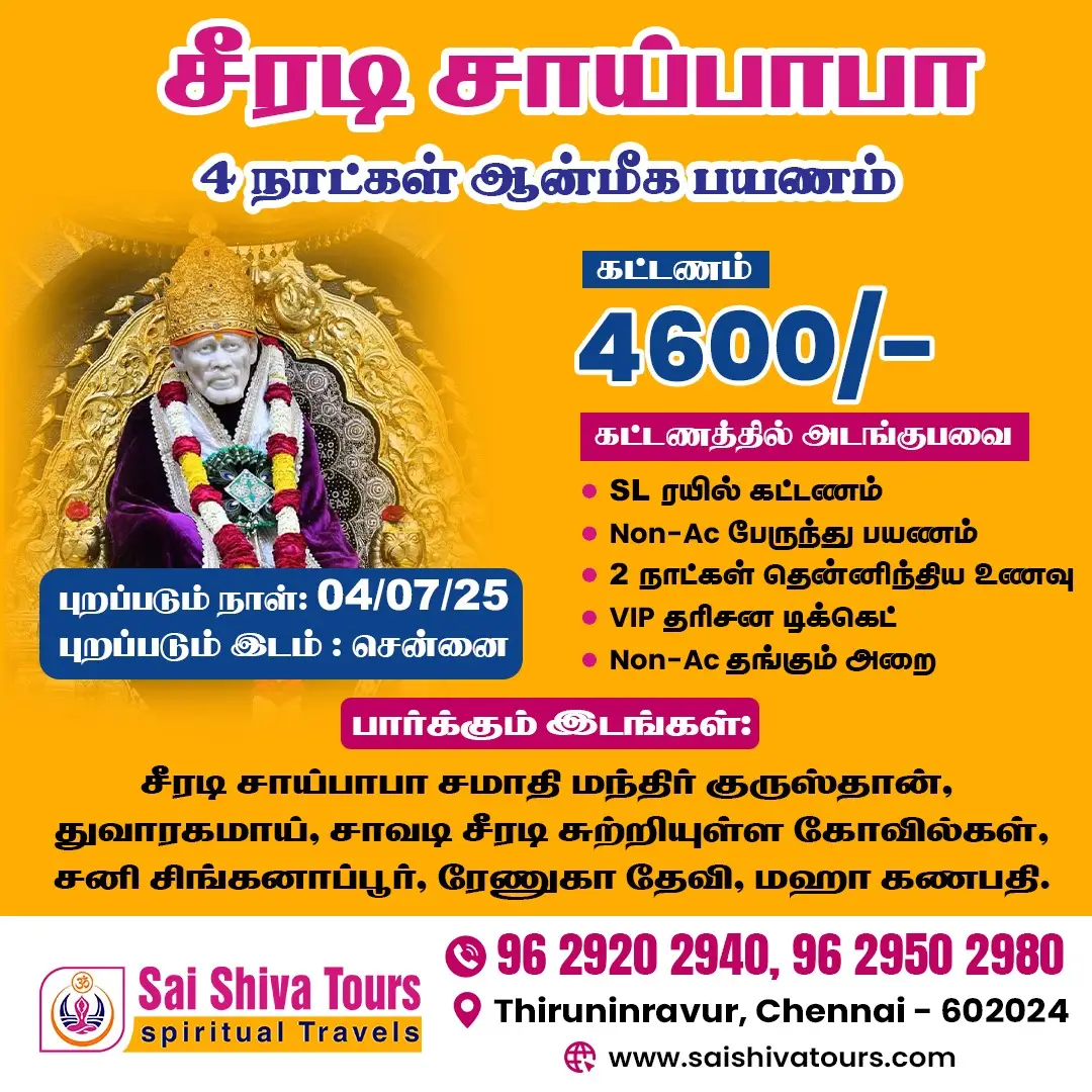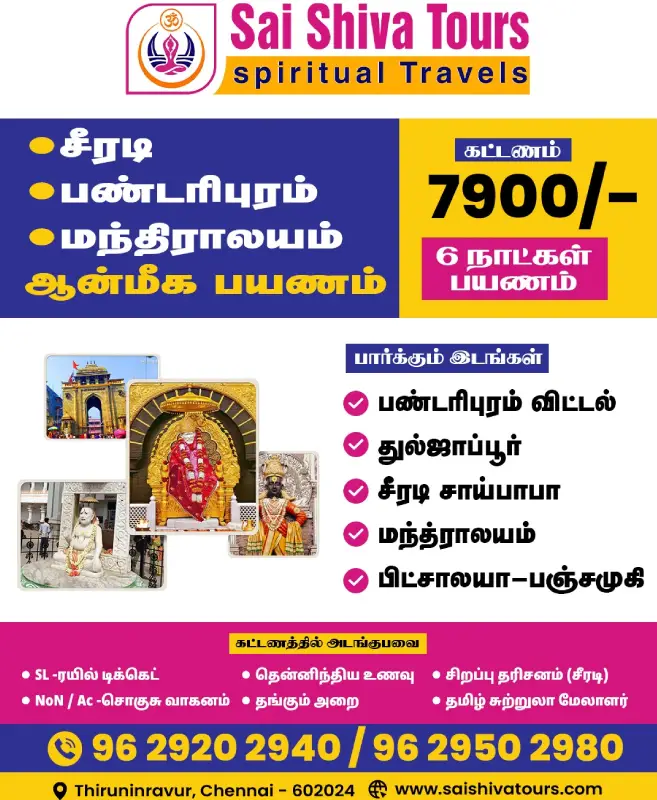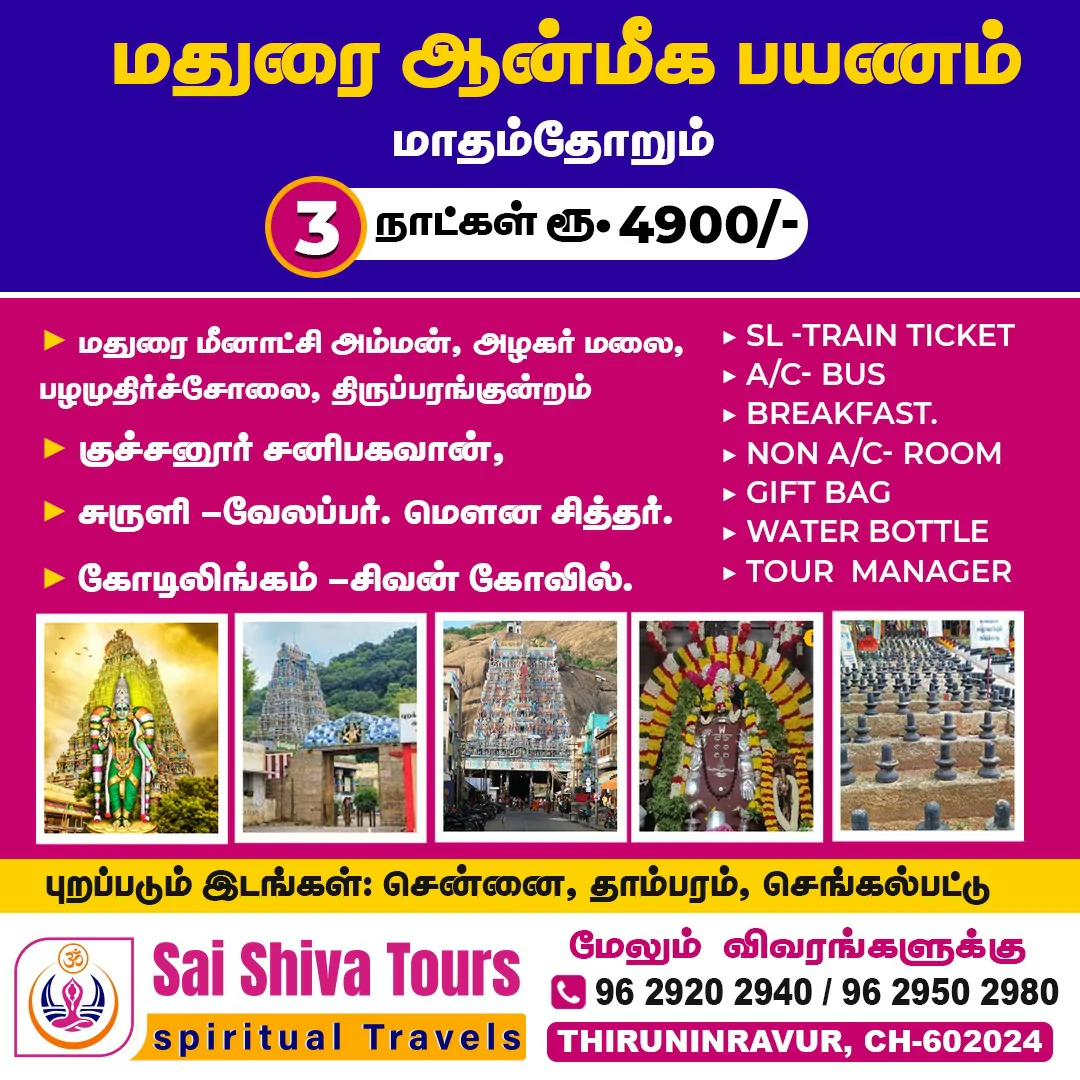 Sai Shiva Tours offers you to explore South India's spiritual richness. Visit prominent places such as Rameswaram, known for the Ramanathaswamy Temple and its sacred waters, and Tirunelveli, home to the historic Nellaiappar Temple. Experience the mystical ambience of Thiruvannamalai, where the Arunachaleswarar Temple and the Girivalam walk attract thousands of pilgrims.